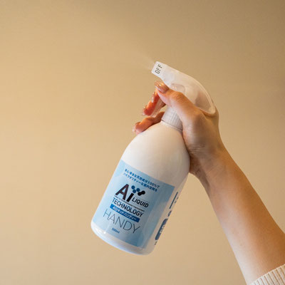 お家のあらゆる場所にAIリキッドハンディスプレーを手軽にスプレーするだけでインフルエンザやコロナ、ノロなどのウイルスを99%減少します。