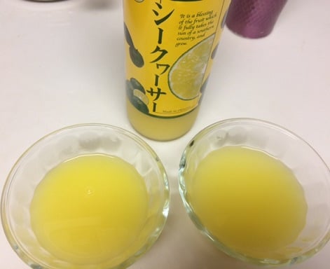 100パーセント果汁のシークワーサー・・・お砂糖も甘味料もはいってないのでかなり酸っぱそう!