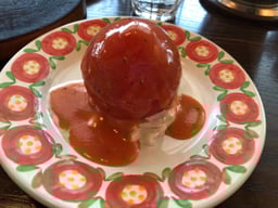 まるごとトマトのサラダにジューシーハンバーグ・ほくほくベイクドポテト。パンかライスが選べました。おなか一杯目にも美味しく幸せなひとときを過ごせました♪