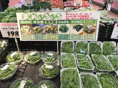 スーパーに行くとグリーンな豆のいろいろを案内していました。