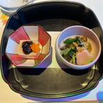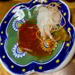 いただいたのは、酢もつ、だし巻き卵の串揚げ、里芋の明太子かけ、そして広島菜のキムチ和えです。