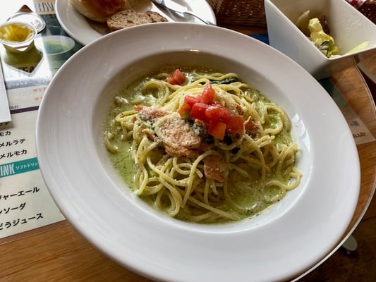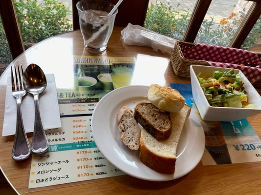 有名なパン屋さんのランチ。パンは食べ放題です。