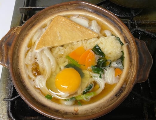 今からの季節は温かい物がいいなあと思って、夕食は鍋焼きうどんにしてみました。身体の中から温まります。